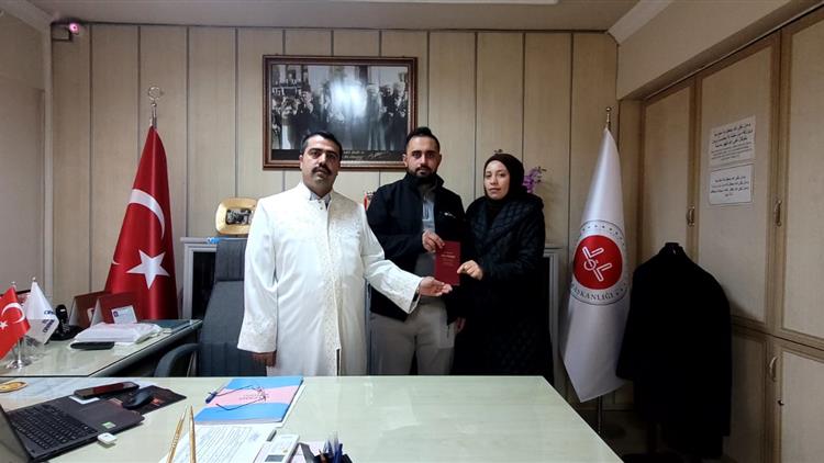 Nikah sonunda İlçe Müftümüz, genç çiftimiz için dua ederek, yeni kurulan yuvanın huzur, mutluluk ve bereketle dolu olmasını, birlik ve beraberliklerinin daim olmasını temenni etti.