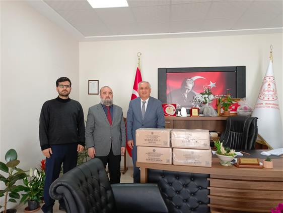 İlçe Müftülüğümüz tarafından ilçemizde bulunan okul kütüphanelerine teslim edilmek üzere İlçe milli eğitim Müdürümüz Sayın Mehmet KARADAĞ'a 20 şer adet Kuran'ı Kerim ve Meali şerifi teslim edildi.