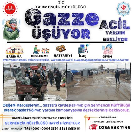 Gazzeli kardeşlerimiz için İlçe Müftülüğü olarak başlattığımız Nakdi yardım kampanyasına desteklerinizi bekliyoruz.