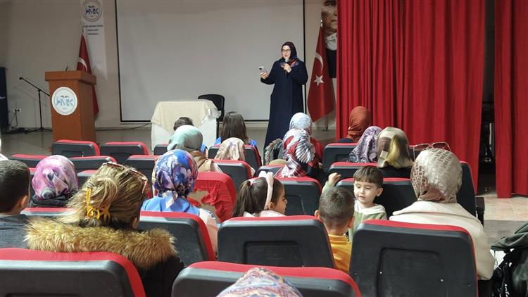 8 Mart Dünya Kadınlar Günü münasebetiyle İlçemiz Hafize-Mehmet Küçük İmam Hatip Ortaokulu konferans salonunda, Aydın il Vaizi Büşranur SEVİNÇ'in konuşmacı olarak olarak katıldığı "Hayatı İmar, Nesli İhya:Anne olarak kadın" Konulu konferans düzenlendi